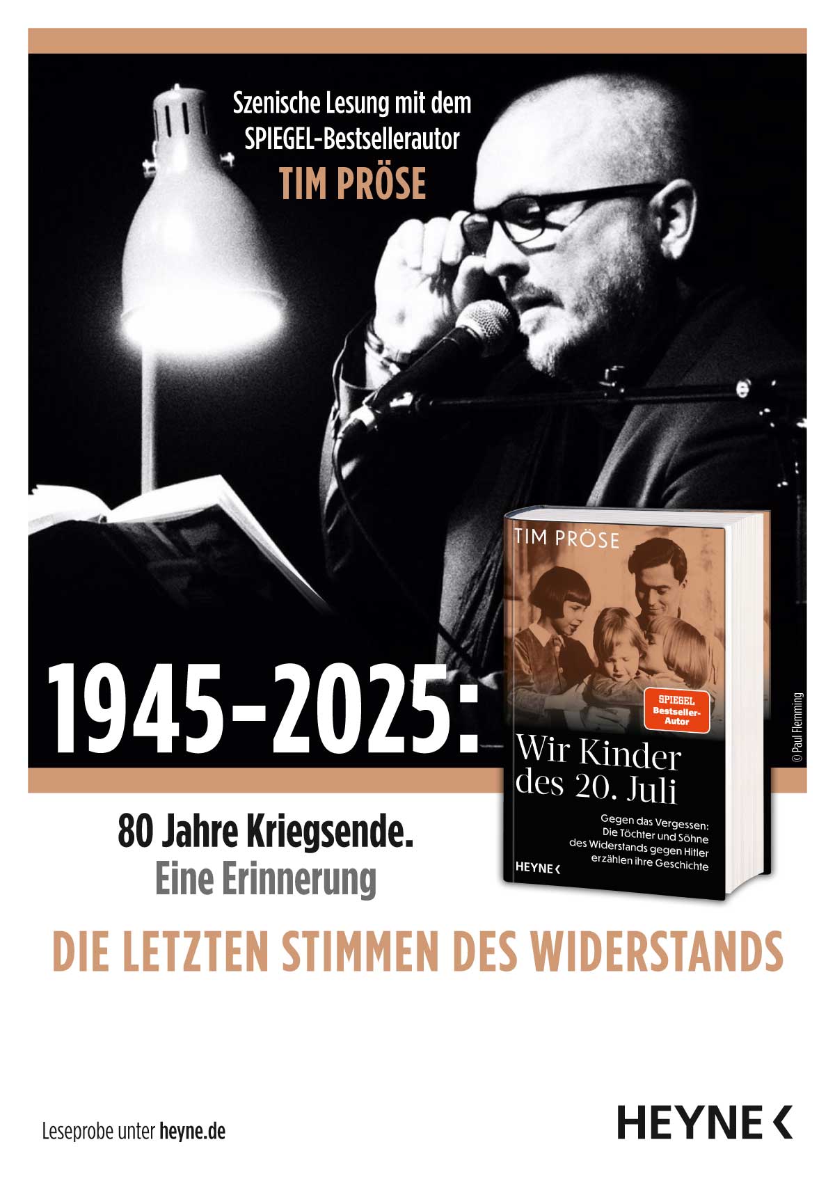 Im Jahr 2025 ist der Zweite Weltkrieg 80 Jahre her. Deswegen erinnert SPIEGEL-Bestsellerautor Tim Pröse an die letzten Helden gegen Hitler. Er ist vielen von ihnen und einigen ihrer Nachkommen selbst begegnet und hat sie lange begleitet.