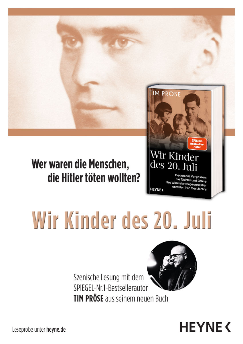 Nach dem Erfolg seiner beiden Tourneen und Programme „Hommage an Sophie Scholl“ und „Hommage an Oskar Schindler“ ist die Lesung „Wir Kinder des 20. Juli“ ab sofort buchbar.